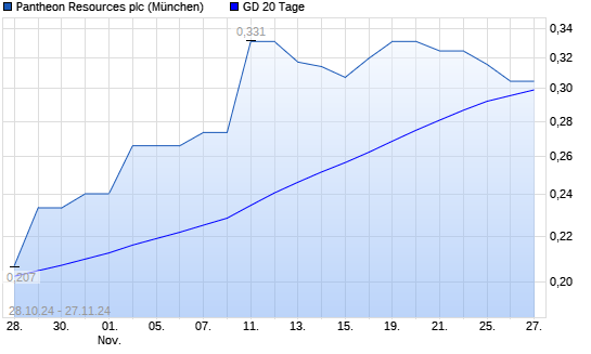 Mit dem Rücksetzer auf 0,28 EUR hat die Pantheon Resources-Aktie am 26.11.2024 die 20-Tage-Linie nach unten gekreuzt.