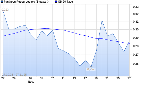 Mit dem Rücksetzer auf 0,27 EUR hat die Pantheon Resources-Aktie am 26.11.2025 die 20-Tage-Linie nach unten gekreuzt.