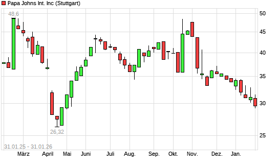 Mit dem Rücksetzer auf 29,40 EUR hat die Papa Johns International-Aktie (ISIN US6988131024) am 30.01.2026 ein neues 6-Monats-Tief erreicht und damit den Kurs vom 29.01.2026 eingestellt.