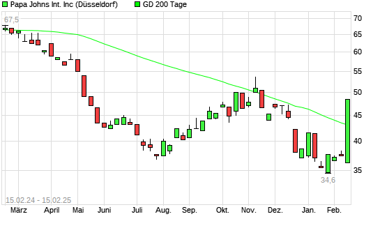 Mit dem Anstieg auf 48,00 EUR hat die Papa Johns International-Aktie am 14.02.2025 die 200-Tage-Linie nach oben gekreuzt.