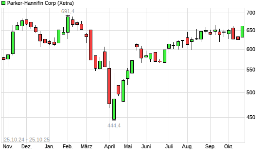 Mit dem Anstieg auf 664,20 EUR hat die Parker-Hannifin-Aktie (ISIN US7010941042) am 24.10.2025 ein neues 6-Monats-Hoch erreicht und damit den Kurs vom 06.10.2025 eingestellt.