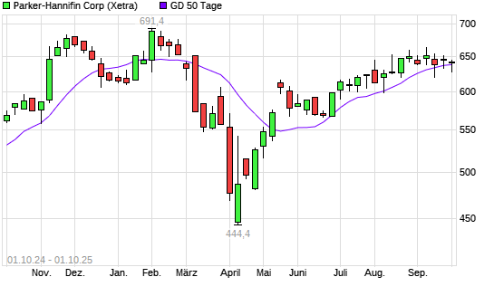 Mit dem Anstieg auf 641,00 EUR hat die Parker-Hannifin-Aktie am 30.09.2025 die 50-Tage-Linie nach oben gekreuzt.
