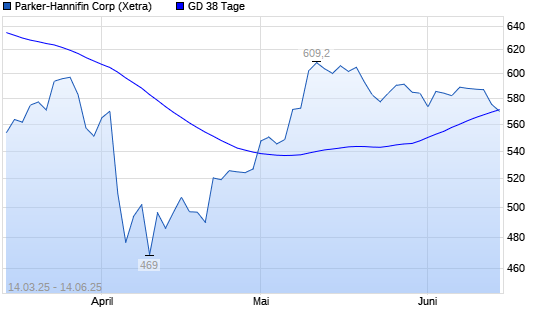 Mit dem Rücksetzer auf 571,00 EUR hat die Parker-Hannifin-Aktie am 13.06.2025 die 38-Tage-Linie nach unten gekreuzt.