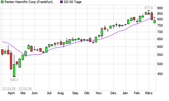 Mit dem Rücksetzer auf 814,80 EUR hat die Parker-Hannifin-Aktie am 11.03.2026 die 50-Tage-Linie nach unten gekreuzt.