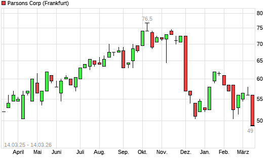 Mit dem Rücksetzer auf 49,00 EUR hat die Parsons-Aktie (ISIN US70202L1026) am 13.03.2026 ein neues 12-Monats-Tief erreicht und damit den Kurs vom 12.03.2026 eingestellt.