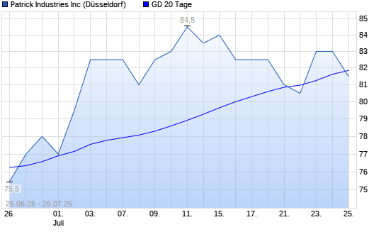 Mit dem Rücksetzer auf 82,00 EUR hat die Patrick Industries-Aktie am 25.07.2025 die 20-Tage-Linie nach unten gekreuzt.