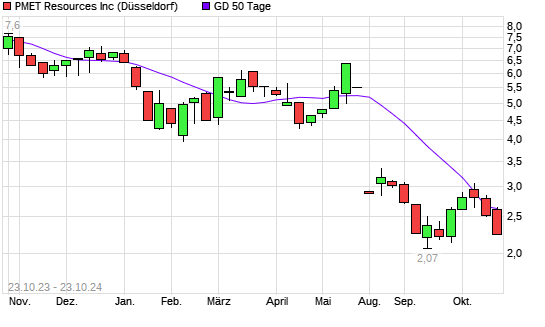 Mit dem Anstieg auf 2,68 EUR hat die Patriot Battery Metals-Aktie am 22.10.2024 die 50-Tage-Linie nach oben gekreuzt.