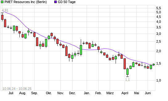 Mit dem Anstieg auf 1,40 EUR hat die Patriot Battery Metals-Aktie am 09.06.2025 die 50-Tage-Linie nach oben gekreuzt.