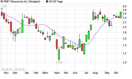 Mit dem Anstieg auf 2,77 EUR hat die Patriot Battery Metals-Aktie am 14.10.2025 die 50-Tage-Linie nach oben gekreuzt.