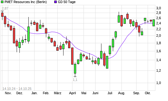 Mit dem Rücksetzer auf 2,34 EUR hat die Patriot Battery Metals-Aktie am 13.10.2025 die 50-Tage-Linie nach unten gekreuzt.