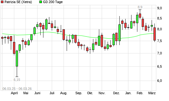 Mit dem Anstieg auf 7,98 EUR hat die Patrizia SE-Aktie am 05.03.2026 die 200-Tage-Linie nach oben gekreuzt.