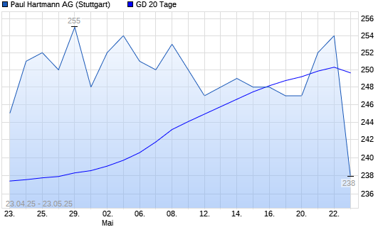 Mit dem Anstieg auf 252,00 EUR hat die Paul Hartmann-Aktie am 22.05.2025 die 20-Tage-Linie nach oben gekreuzt.