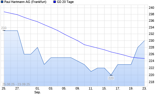 Mit dem Anstieg auf 228,00 EUR hat die Paul Hartmann-Aktie am 22.09.2025 die 20-Tage-Linie nach oben gekreuzt.