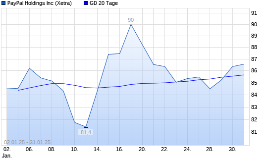 Mit dem Anstieg auf 85,93 EUR hat die PayPal-Aktie am 30.01.2025 die 20-Tage-Linie nach oben gekreuzt.