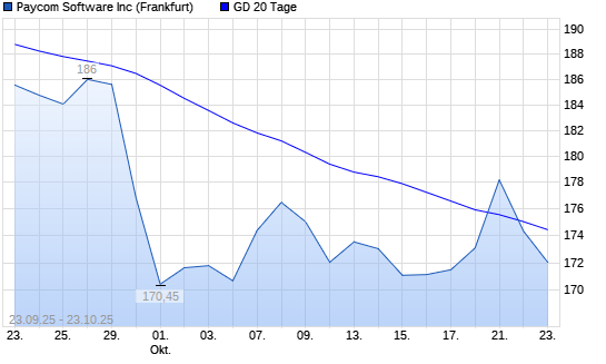 Mit dem Anstieg auf 177,50 EUR hat die Paycom Software-Aktie am 22.10.2025 die 20-Tage-Linie nach oben gekreuzt.