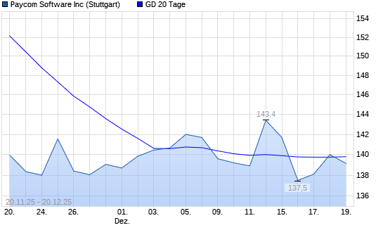Mit dem Rücksetzer auf 139,00 EUR hat die Paycom Software-Aktie am 19.12.2025 die 20-Tage-Linie nach unten gekreuzt.