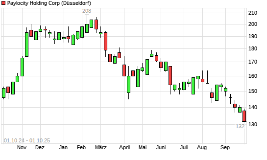 Mit dem Rücksetzer auf 137,00 EUR hat die Paylocity Holding-Aktie (ISIN US70438V1061) am 30.09.2025 ein neues 12-Monats-Tief erreicht und damit den Kurs vom 29.09.2025 eingestellt.