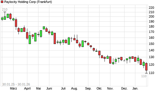 Mit dem Rücksetzer auf 110,00 EUR hat die Paylocity Holding-Aktie (ISIN US70438V1061) am 29.01.2026 ein neues 5-Jahres-Tief erreicht und damit den Kurs vom 20.01.2026 eingestellt.