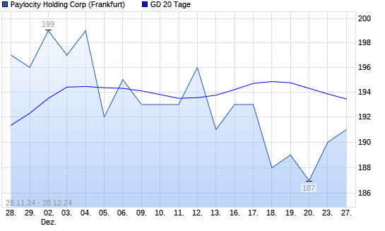 Mit dem Anstieg auf 191,00 EUR hat die Paylocity Holding-Aktie am 27.12.2024 die 20-Tage-Linie nach oben gekreuzt.