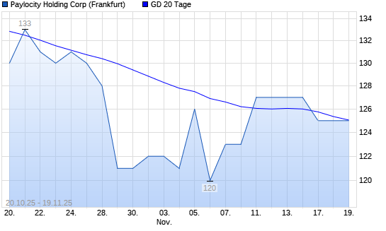 Mit dem Rücksetzer auf 124,00 EUR hat die Paylocity Holding-Aktie am 18.11.2025 die 20-Tage-Linie nach unten gekreuzt.