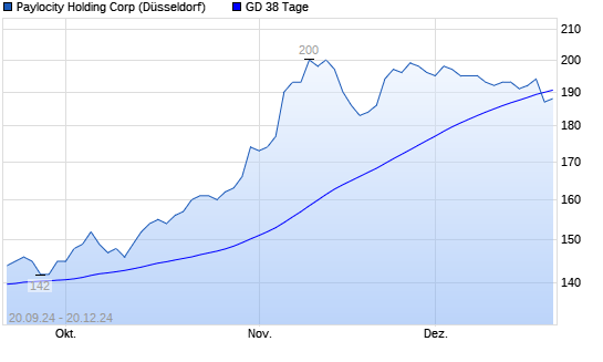 Mit dem Rücksetzer auf 185,00 EUR hat die Paylocity Holding-Aktie am 19.12.2024 die 38-Tage-Linie nach unten gekreuzt.