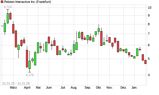Mit dem Rücksetzer auf 4,66 EUR hat die Peloton Interactive-Aktie (ISIN US70614W1009) am 30.01.2026 ein neues 6-Monats-Tief erreicht und damit den Kurs vom 29.01.2026 eingestellt.