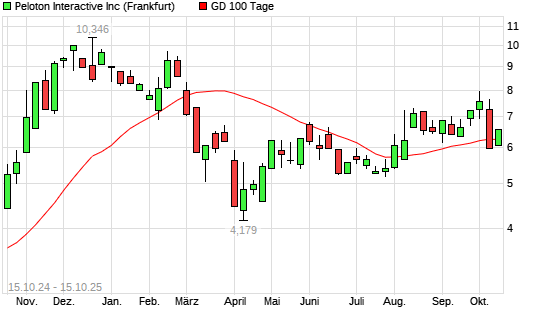 Mit dem Anstieg auf 6,42 EUR hat die Peloton Interactive-Aktie am 14.10.2025 die 100-Tage-Linie nach oben gekreuzt.