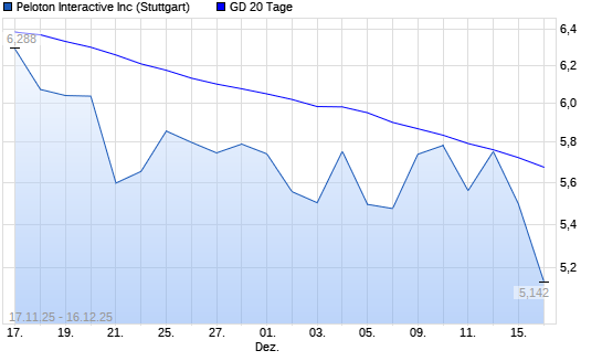 Mit dem Rücksetzer auf 5,45 EUR hat die Peloton Interactive-Aktie am 15.12.2025 die 20-Tage-Linie nach unten gekreuzt.