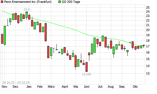 Mit dem Anstieg auf 17,24 EUR hat die Penn National Gaming-Aktie am 23.10.2024 die 200-Tage-Linie nach oben gekreuzt.