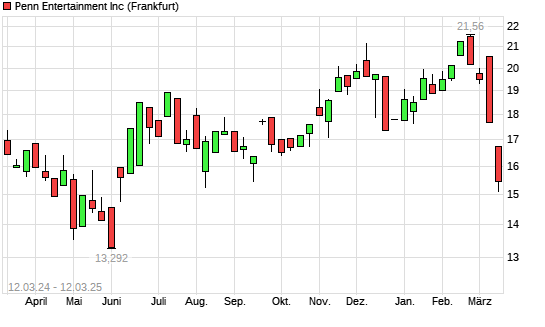 Mit dem Rücksetzer auf 15,12 EUR hat die Penn National Gaming-Aktie (ISIN US7075691094) am 11.03.2025 ein neues 6-Monats-Tief erreicht und damit den Kurs vom 11.09.2024 eingestellt.Die ...weiterlesen