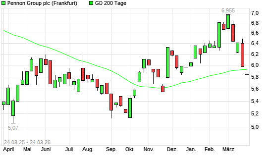 Mit dem Rücksetzer auf 5,84 EUR hat die Pennon Group-Aktie am 23.03.2026 die 200-Tage-Linie nach unten gekreuzt.