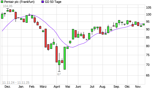 Mit dem Anstieg auf 93,62 EUR hat die Pentair-Aktie am 10.11.2025 die 50-Tage-Linie nach oben gekreuzt.