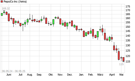 Mit dem Rücksetzer auf 116,62 EUR hat die PepsiCo-Aktie (ISIN US7134481081) am 05.05.2025 ein neues 3-Jahres-Tief erreicht und damit den Kurs vom 28.04.2025 eingestellt.