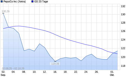 Mit dem Anstieg auf 122,02 EUR hat die PepsiCo-Aktie am 01.10.2025 die 20-Tage-Linie nach oben gekreuzt.