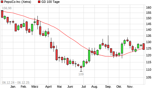 Mit dem Rücksetzer auf 124,54 EUR hat die PepsiCo-Aktie am 05.12.2025 die 100-Tage-Linie nach unten gekreuzt.