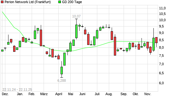 Mit dem Anstieg auf 8,31 EUR hat die Perion Network-Aktie am 21.11.2025 die 200-Tage-Linie nach oben gekreuzt.