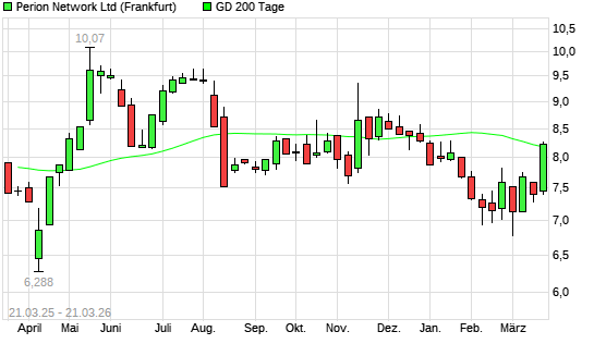 Mit dem Anstieg auf 8,23 EUR hat die Perion Network-Aktie am 20.03.2026 die 200-Tage-Linie nach oben gekreuzt.