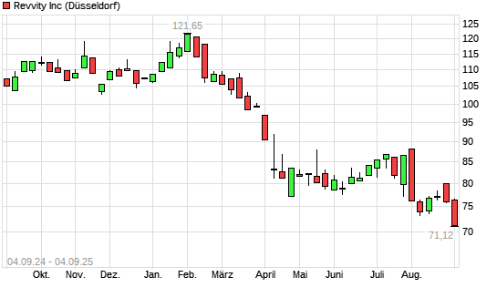 Mit dem Rücksetzer auf 72,08 EUR hat die PerkinElmer-Aktie (ISIN US7140461093) am 03.09.2025 ein neues 5-Jahres-Tief erreicht und damit den Kurs vom 12.08.2025 eingestellt.