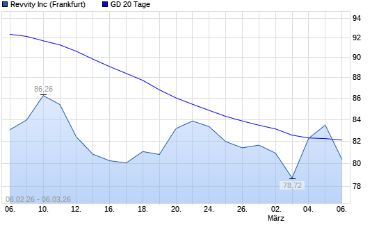 Mit dem Anstieg auf 83,48 EUR hat die PerkinElmer-Aktie am 05.03.2026 die 20-Tage-Linie nach oben gekreuzt.