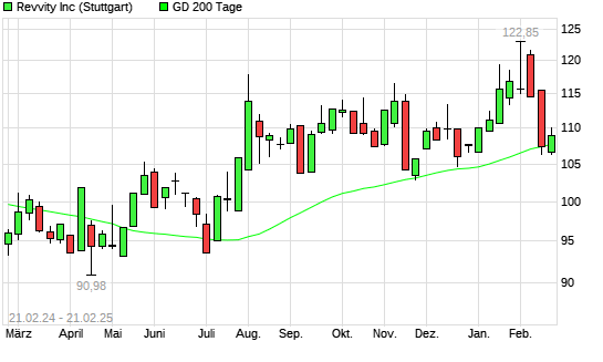 Mit dem Anstieg auf 109,45 EUR hat die PerkinElmer-Aktie am 20.02.2025 die 200-Tage-Linie nach oben gekreuzt.