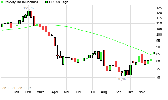 Mit dem Anstieg auf 83,84 EUR hat die PerkinElmer-Aktie am 24.11.2025 die 200-Tage-Linie nach oben gekreuzt.