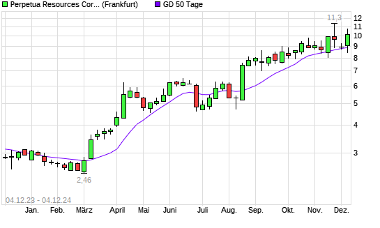 Mit dem Anstieg auf 9,90 EUR hat die Perpetua Resources-Aktie am 03.12.2024 die 50-Tage-Linie nach oben gekreuzt.