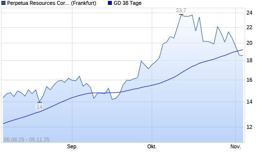 Mit dem Rücksetzer auf 18,55 EUR hat die Perpetua Resources-Aktie am 04.11.2025 die 38-Tage-Linie nach unten gekreuzt.