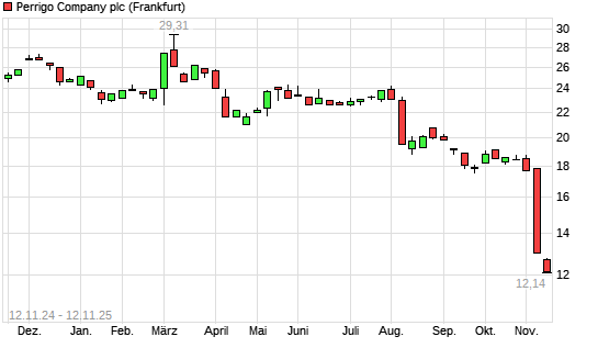 Mit dem Rücksetzer auf 12,19 EUR hat die Perrigo Company-Aktie (ISIN IE00BGH1M568) am 11.11.2025 ein neues 10-Jahres-Tief erreicht und damit den Kurs vom 10.11.2025 eingestellt.