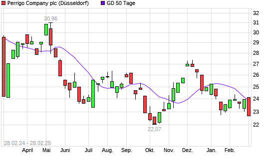 Mit dem Rücksetzer auf 23,67 EUR hat die Perrigo Company-Aktie am 27.02.2025 die 50-Tage-Linie nach unten gekreuzt.