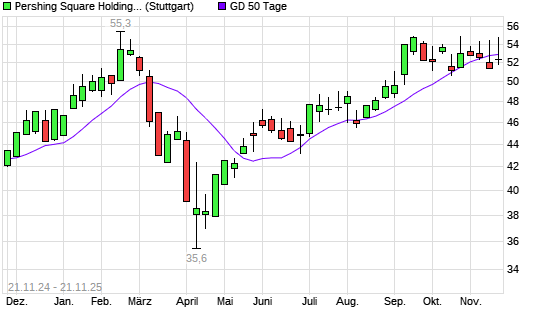 Mit dem Anstieg auf 54,90 EUR hat die Pershing Square Holdings-Aktie am 20.11.2025 die 50-Tage-Linie nach oben gekreuzt.