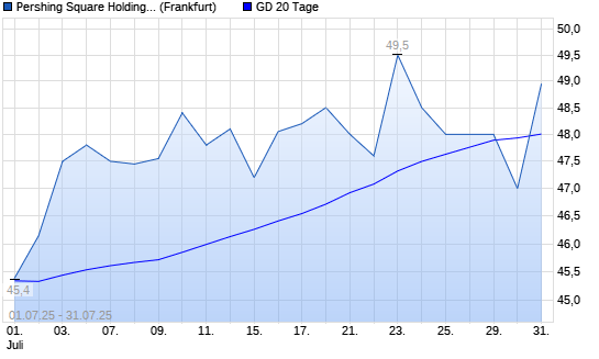 Mit dem Rücksetzer auf 47,00 EUR hat die Pershing Square Holdings-Aktie am 30.07.2025 die 20-Tage-Linie nach unten gekreuzt.