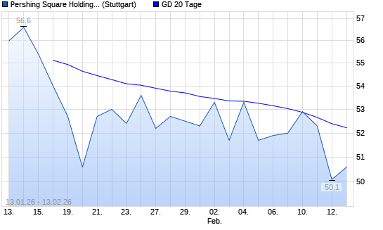 Mit dem Rücksetzer auf 51,90 EUR hat die Pershing Square Holdings-Aktie am 12.02.2026 die 20-Tage-Linie nach unten gekreuzt.Die Pershing Square Holdings-Aktie befindet sich seit dem 27.06.2025 ...weiterlesen