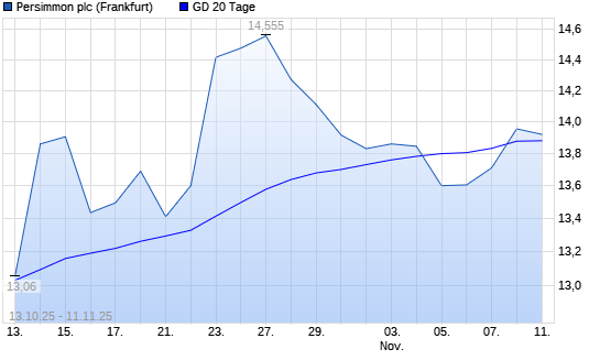 Mit dem Anstieg auf 13,95 EUR hat die Persimmon-Aktie am 10.11.2025 die 20-Tage-Linie nach oben gekreuzt.