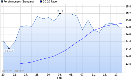 Mit dem Rücksetzer auf 14,64 EUR hat die Persimmon-Aktie am 17.02.2025 die 20-Tage-Linie nach unten gekreuzt.
